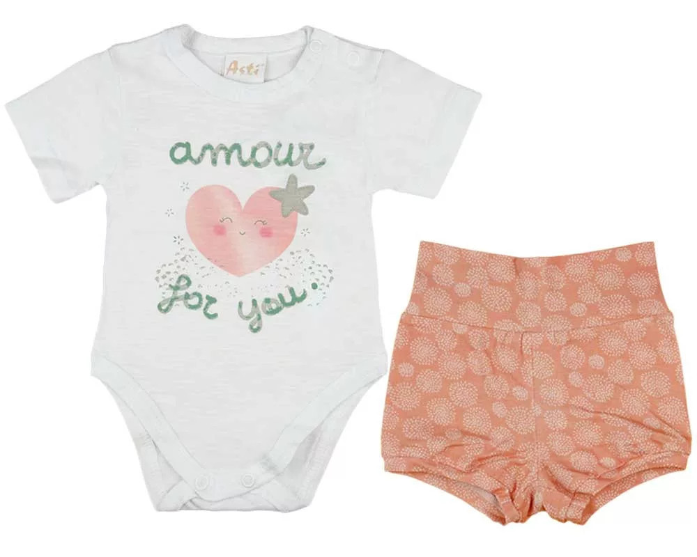 Szívecskés 3 részes baba szett, ami tökéletes ajándék lehet bármelyik kislánynak. A csomag tartalmaz egy rövid ujjú body-t, melynek válla patentos, így könnyen felvehető és levehető a kicsiken. A szett része még egy gumis derekú baba nadrág és egy cuki baba fejpánt is. Mindkét darab kiváló minőségű magyar termék, amelyek anyaga 90% pamut és 10% elasztán. A szett fehér színű, amely igazán jól mutat minden kislányon, a szívecskés minta pedig még édibbé teszi a szettet. Magyar termék. Fontos megemlíteni, hogy a termék nikkelmentes patenttal készül, így az erre érzékeny babák sem fognak allergiás reakciót tapasztalni. Gondosan válogatott anyagokból készült, hogy a legkisebbek is bátran hordhassák.