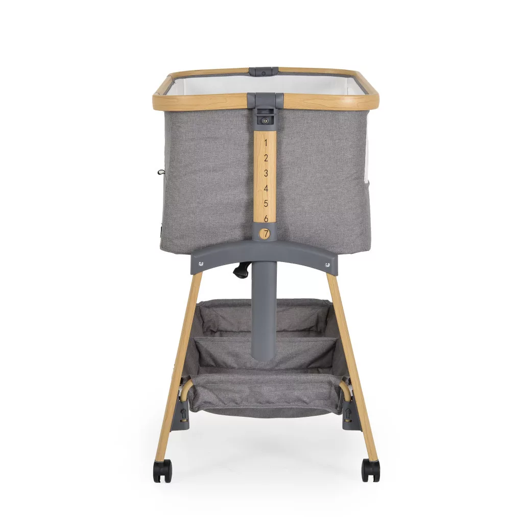 Magassága 7 pozíció egyikébe állítható, a kiságy pedig 30°-os szögben dönthető, hogy segítse babája emésztését, javítsa a légzést és kezelje a refluxot, ha csak az ágy egyik oldalát emeli meg 1 fokos különbséggel.Az ágy 4 görgővel van felszerelve, 4 kerék ütközőkkel a könnyű mozgatáshoz.A szuperkényelmes matrac és a puha oldalak megfelelő helyzetben tartják babáját, és biztonságban tartják. Tartozék szúnyoghálóval és egy alsó kosárral.