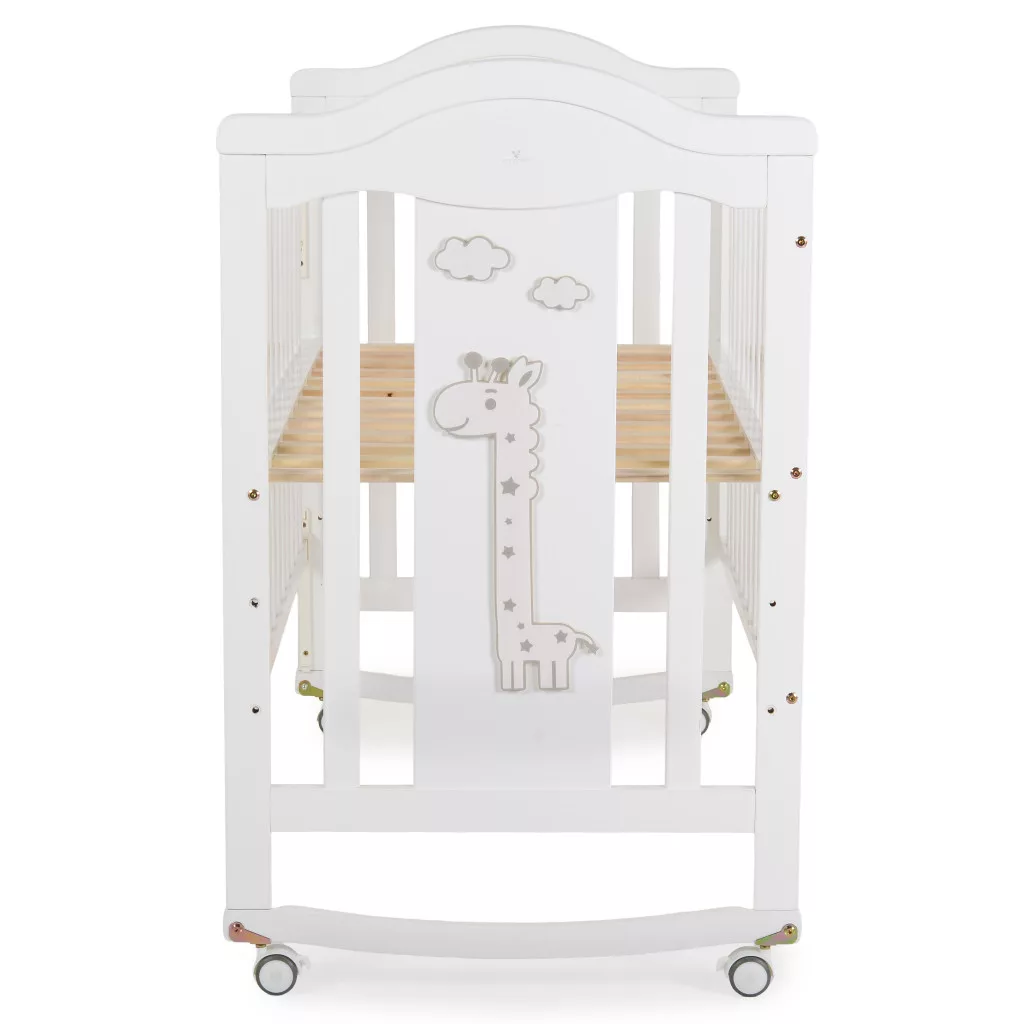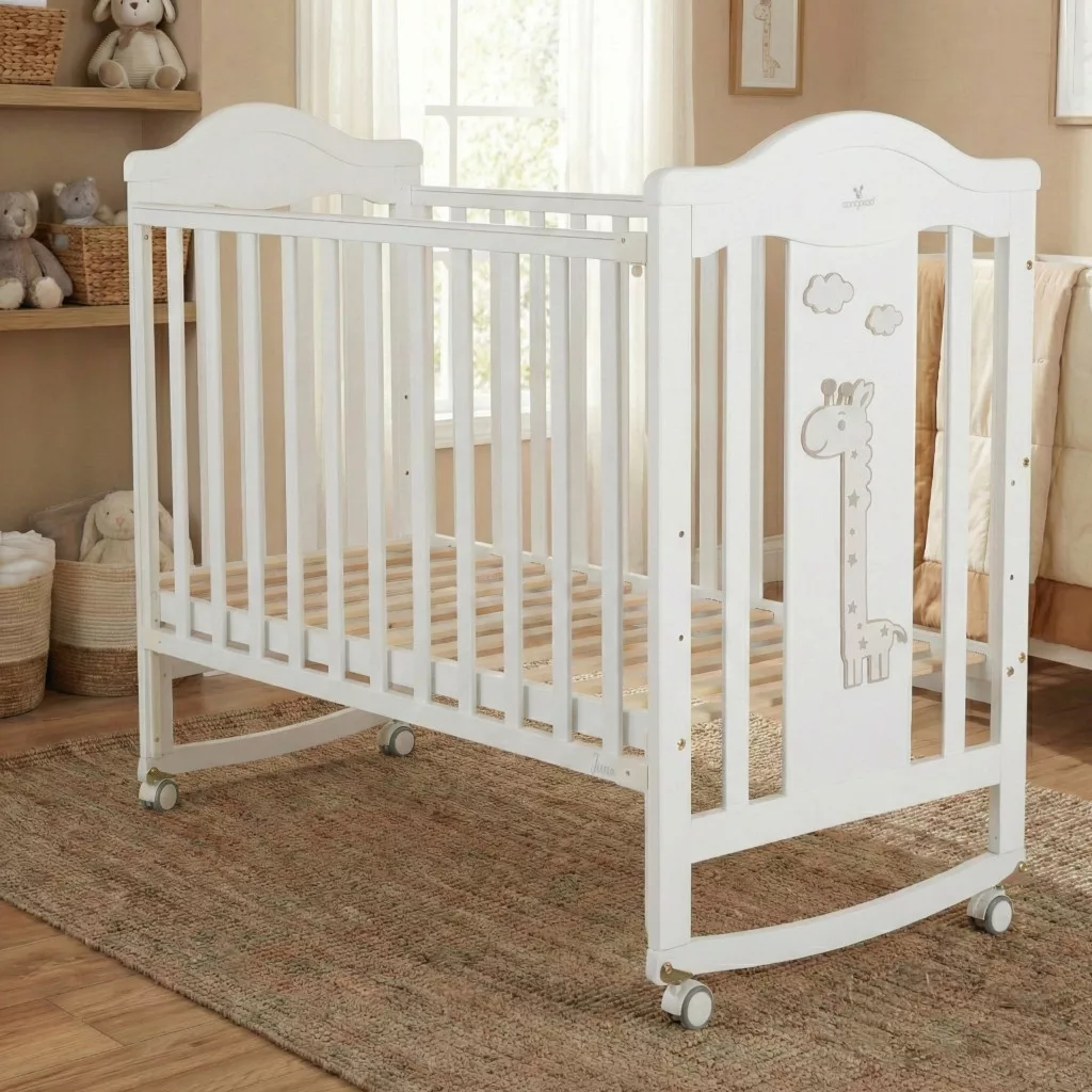 A Cangaroo Juno babaágya a kényelmet, a biztonságot és a funkcionalitást ötvözi egy elegáns dizájnban, amelyet úgy terveztek, hogy nyugodt és kényelmes alvási környezetet biztosítson babájának már az első napoktól kezdve. Kiváló minőségű fenyőfából készült, stabilitást és tartósságot biztosít a hosszú távú használathoz. Főbb jellemzők:• Erős és tartós fenyőfából készült• 3 matracmagasság-pozíció, amely a gyermek életkorának megfelelően állítható• Lehajtható oldalrács a könnyebb hozzáférés és a szülők nagyobb kényelme érdekében• Ringató funkció a könnyebb alváshoz – a ringató mechanizmus a kerekek behúzása után használható, így a kiságy bölcsőként is funkcionálhat• 4 kerék ütközőkkel a könnyű mozgatás és a biztonságos pozicionálás érdekében• Stabil és biztonságos konstrukció a nyugodt alvásért• Dekoratív 3D zsiráffigura, amely otthonos és játékos kiegészítője a gyerekszobának• 120 × 60 cm-es matrachoz alkalmasA Juno biztonságos és kényelmes teret teremt az alváshoz és a pihenéshez, még otthonosabb hellyé varázsolva a gyerekszobát a kicsi számára.Az EN 716-1:2017+AC:2019 és EN 716-2:2017 európai szabványoknak megfelelően gyártva.