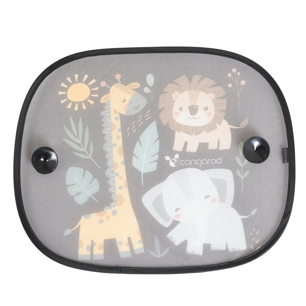 A Cangaroo állatos autós napellenzői vidám dizájnjukkal hívják fel magukra a figyelmet, és kiváló napvédelmet nyújtanak a kis utasoknak. Kényelmesebb környezetet teremtenek a gyermekek számára útközben, elősegítik a pihentető alvást, és megakadályozzák az autó kárpitjának és a gyermekülésnek a felmelegedését.Gyorsan és egyszerűen felszerelhetők a hátsó ablakokra két tapadókorong segítségével, amelyek a megfelelő helyen rögzítik őket. Amikor nem használják, a napernyők kompakt módon összecsukhatók és kényelmesen elférnek a mellékelt szövet tasakban.A készlet tartalma: 2 napellenző, 2 tapadókorong, 1tárolótáska.