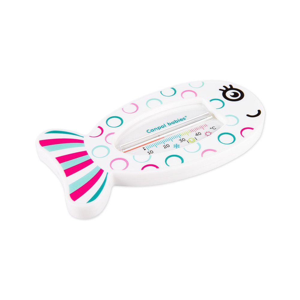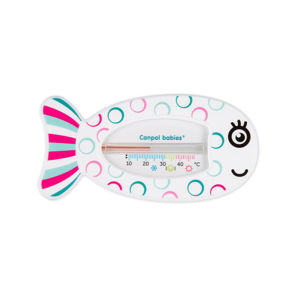 A fürdővízhőmérőt a kisgyermek előkészített fürdővizének hőmérsékletének ellenőrzésére használják. Pontos, megbízható, könnyen leolvasható skálával rendelkezik. A hőmérséklet méréséhez - a termékben festett alkoholt/petrolétert használ. A hőmérő csöve biztonságosan a hőmérő testébe van süllyesztve, hogy a gyermek ne férjen hozzá. Figyelmeztetés! A kisgyermekek számára ajánlott fürdési hőmérséklet 32 - 37°C között van, és a hőmérőn nevető arc szimbólummal van jelölve. A hópehellyel jelölt hőmérséklet túl alacsony, a nappal jelölt hőmérséklet pedig túl magas.