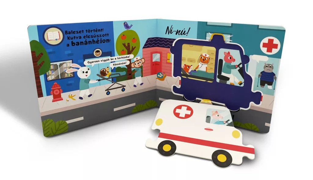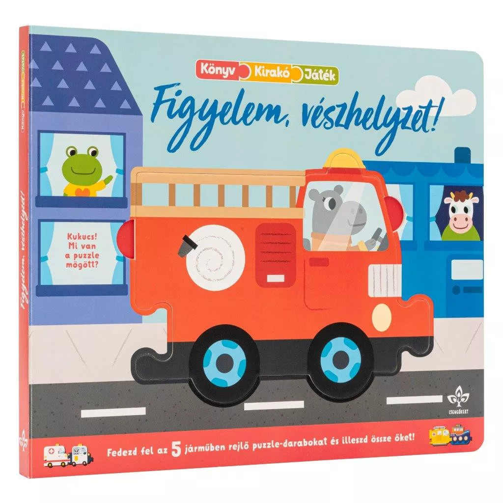 Milyen pezsgő élet zajlik az utakon! Vész esetén azonnal feltűnnek a hangos tűzoltóautók, rendőrautók és mentők, míg a vízen és a levegőben a mentőegységek villognak és zúgnak. Mindenki segítségére sietnek a bajban. Olvasd el, melyik jármű mikor nyújt segítséget.Emeld ki a puzzle-járműveket az oldalakról és rakd össze a darabokat! Nézd meg, kiket, miket találsz a kirakók helyén, és meséld el!A sorozat kötetei multifunkcionálisak: gyerekkönyvként, kirakóként és feladatmegoldóként egyaránt szolgálnak. A gyermekek kedvenc témájáról, a járművekről szóló történeteket tartalmaznak. Minden oldalon egy kirakódarab található, melyet könnyedén ki lehet emelni, alatta pedig meglepetésfigurák rejlenek. Az összegyűjtött kirakókat egymáshoz illesztve egy újabb csodajárgány születik. Az izgalmas kötetek bővítik a szókincset, fejlesztik a finommotorikát, javítják a megfigyelőképességet, és arra késztetik a gyereket, hogy magától is felfedezhesse a világ dolgait.