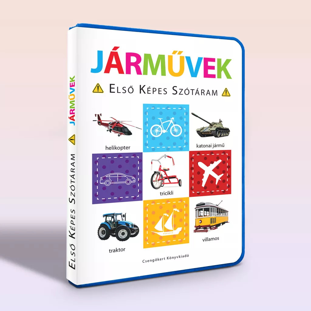 Melyik jármű dudál a leghangosabban, és melyik repítene el a felhők közé? A Járművek képes szótár elkalauzolja a gyerekeket a közlekedés izgalmas világába, ahol földön, vízen és levegőben színes járművek sorát fedezhetik fel. A szókincsbővítő könyv játékosan ösztönzi a kicsiket, hogy saját történeteket meséljenek a járművekről. Megunhatatlan téma egy kisgyerek számára a közlekedés, a járművek világa. Bármerre néz, vizen, földön, levegőben érdekesebbnél érdekesebb szerkezetek jönnek-mennek, tutulnak, dudálnak, nyikorognak, gyönyörködtetnek, villognak, szállítanak, dolgoznak. Járművek egész sora tartja izgalomban a bámész kicsit, aki maga is gyűjteni kívánja a kis autókat, rendőr- és tűzoltókocsikat, helikoptereket, versenyautókat és már fantáziájában repül is egy nagy utasszállító repülővel, hiszen ő a pilóta. Meséljünk, és hagyjuk mesélni. A kezdeti lépésekhez kívánunk segítséget nyújtani képes szótárunkkal. Tanuljunk játszva, örömmel!Sorozatunk négy nagy témába rendezi össze az iskoláskor előtti gyermekeknek a sokszínű világ kifejezéseit, hogy ezáltal játékosan gyarapodhasson szókincse, megalapozhassa készségeit és képességeit a további tanuláshoz. A fotókon keresztül élőhelyük szerint mutatja be az állatvilágot (Háziállatok, A vadonban, Vízi világ, Dzsungel, Állatkölykök); a kisgyerek első tapasztalati dolgait: testét, az ennivalóit, játékait, a házban levő dolgokat, fogalmakat (Kicsik világa, Mi micsoda?, Otthonunk). Fejlesztő jellegű a Színek, Számok, Formák, Betűk, Állatábécé című kötetek, az alapfogalmakkal megágyazva az írás és olvasás gyakorlatának. A Járművek téma pedig a mindenféle autókra és munkagépekre kívácsi kicsik érdeklődését kívánja kielégíteni.