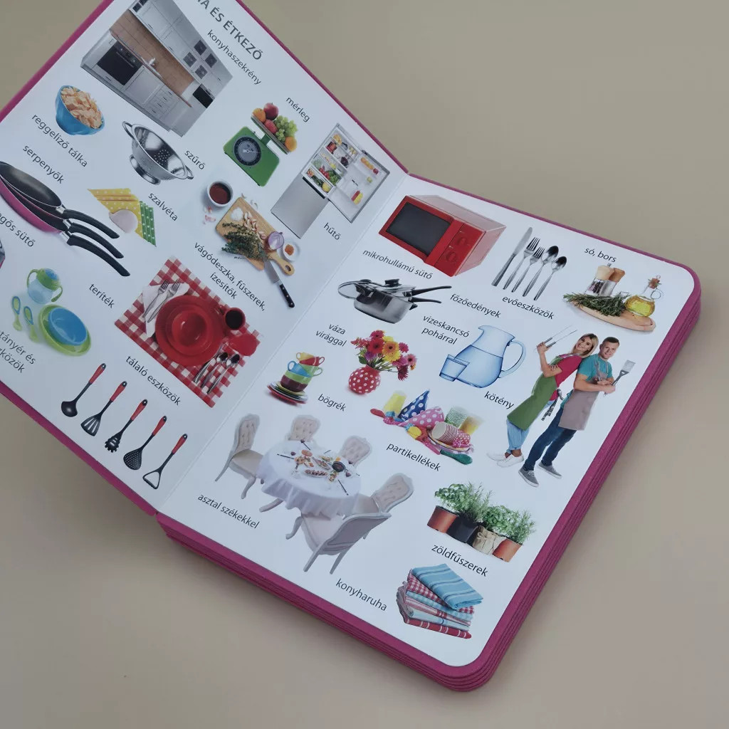 A kisgyermek ideje nagyrészét otthon tölti, ez a szűk mikrokörnyezet minden tevékenységének helyszíne, szókincse az itt zajló történésekből, tárgyak megnevezéséből indul ki. A képes szótár ezekhez ad támpontot, amikor csokorba gyűjti a lakás részeinek berendezését, a balkon vagy kis kert tárgyait. Megnevezzük és tovább is játszhatjuk a kicsikkel, arra kérve, mutassák meg saját otthonuk kellékeit, tárgyait. Tanuljunk játszva, örömmel!Sorozatunk négy nagy témába rendezi össze az iskoláskor előtti gyermekeknek a sokszínű világ kifejezéseit, hogy ezáltal játékosan gyarapodhasson szókincse, megalapozhassa készségeit és képességeit a további tanuláshoz. A fotókon keresztül élőhelyük szerint mutatja be az állatvilágot (Háziállatok, A vadonban, Vízi világ, Dzsungel, Állatkölykök); a kisgyerek első tapasztalati dolgait: testét, az ennivalóit, játékait, a házban levő dolgokat, fogalmakat (Kicsik világa, Mi micsoda?, Otthonunk). Fejlesztő jellegű a Színek, Számok, Formák, Betűk, Állatábécé című kötetek, az alapfogalmakkal megágyazva az írás és olvasás gyakorlatának. A Járművek téma pedig a mindenféle autókra és munkagépekre kívácsi kicsik érdeklődését kívánja kielégíteni.