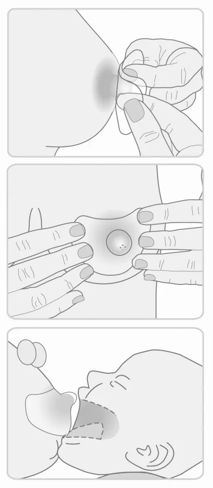 FONTOS! Figyelj, hogy picid nagyra nyitott szájjal kapja be a bimbóvédőt úgy, hogy a bimbóudvar egy része is a szájában legyen. Ellenőrizd azt is, hogy ajkai kifelé forduljanak és így szopjon.