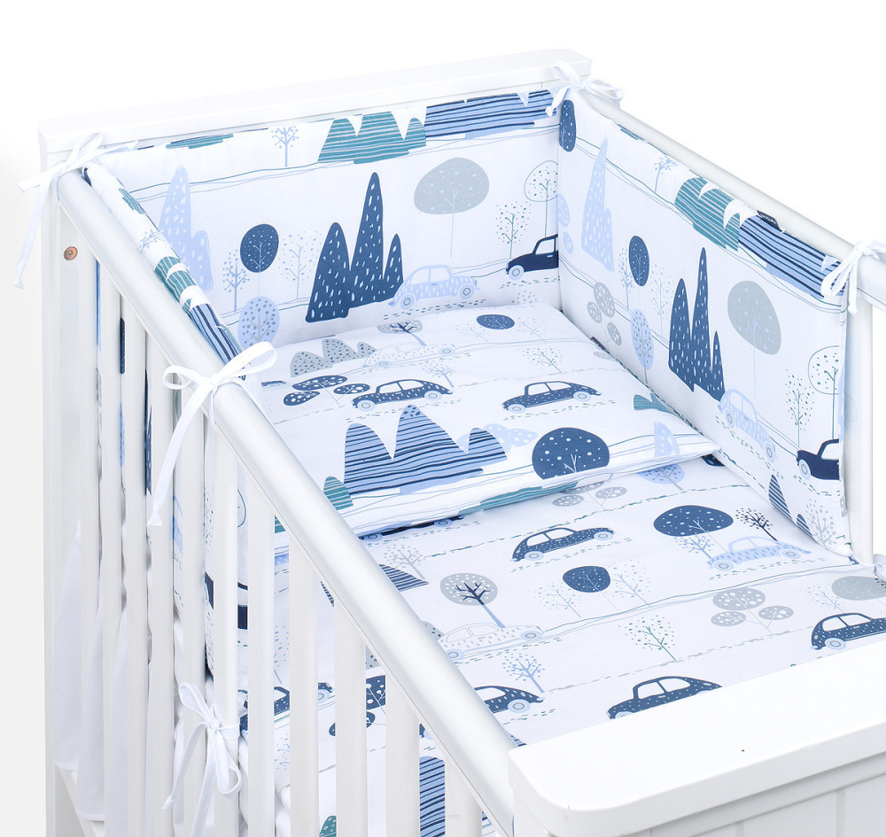 A rácsvédő 8 hosszú, szépen varrott pánttal rendelkezik, melynek köszönhetően fixálható a kiságy rácsaihoz.