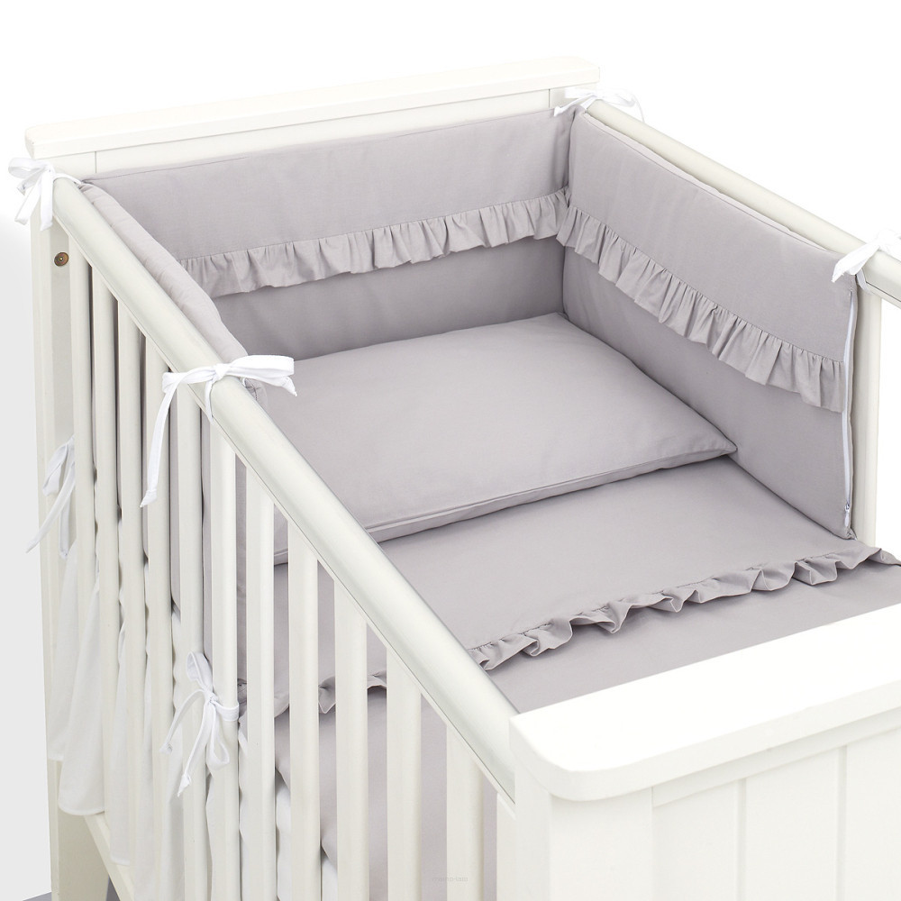 A rácsvédő 8 db hosszú, szépen varrott pánttal rendelkezik, melynek köszönhetően fixálható a kiságy rácsaihoz.