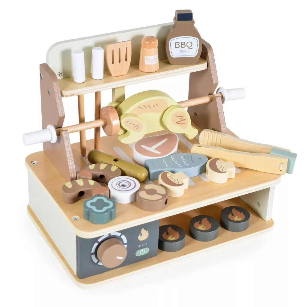 A Moni Toys fa grillsütő készlet remek választás a kis szakácsok és grillmesterek számára! A 26 darabból álló szerepjáték szett segítségével a gyerekek játékosan ismerkedhetnek meg a grillezés világával, miközben fejlődik képzelőerejük és finommotoros készségük.