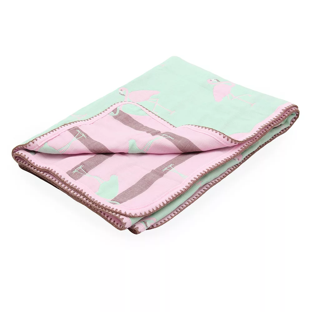 Scamp hatréregű kétoldalas babatakaró - Green Rose Flamingo