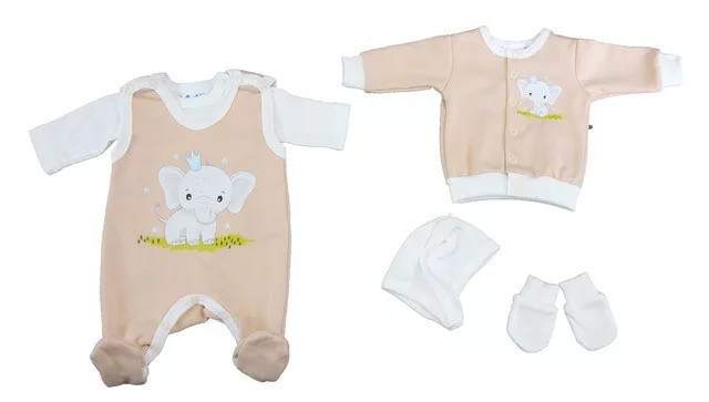 ABR 5 részes belül bolyhos baba szett elefánt mintával - Bézs (50)