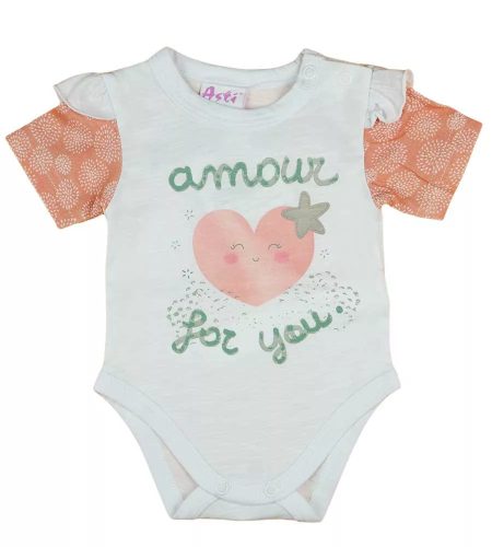 ABR Rövid ujjú fodros body - Fehér - Szivecskés mintával (68)