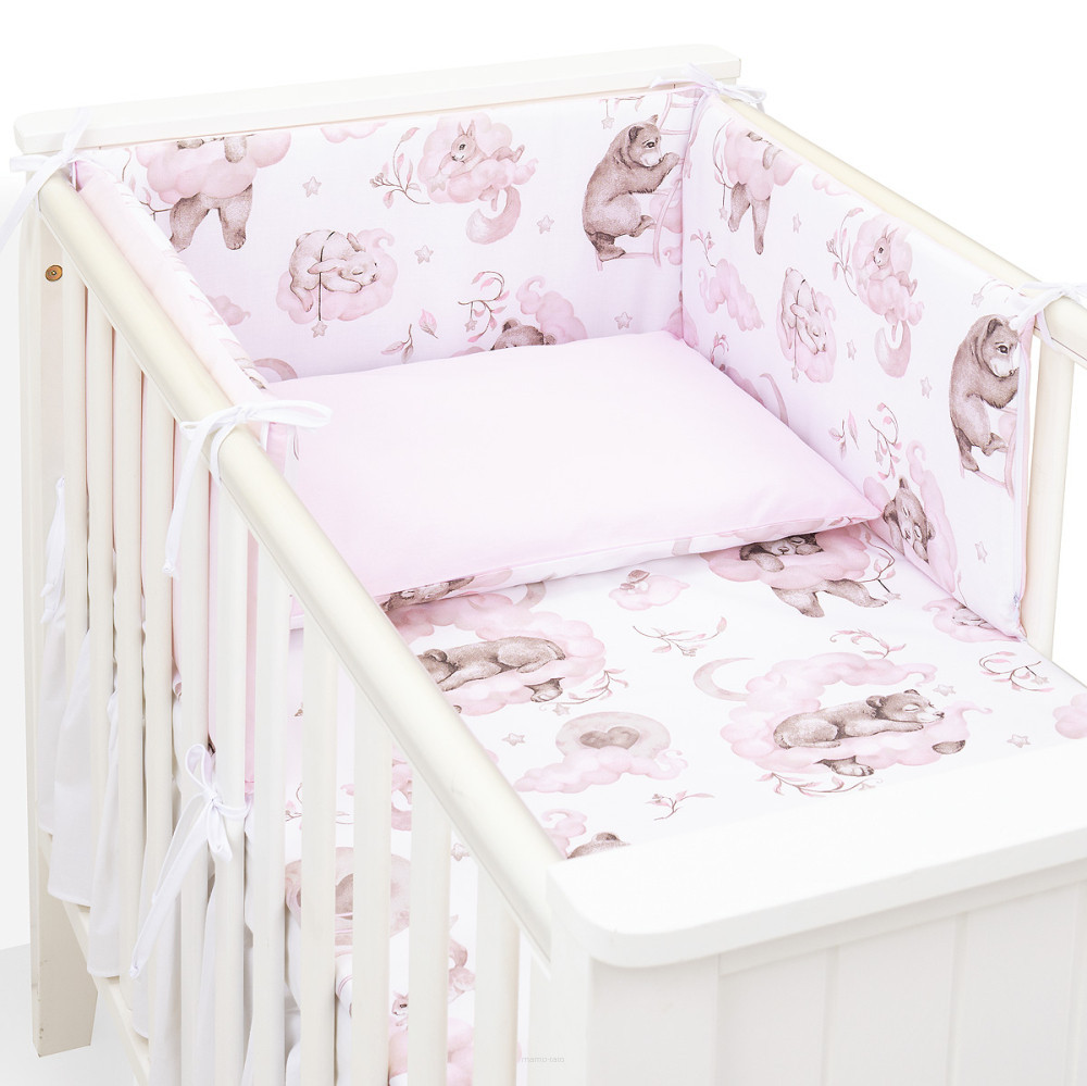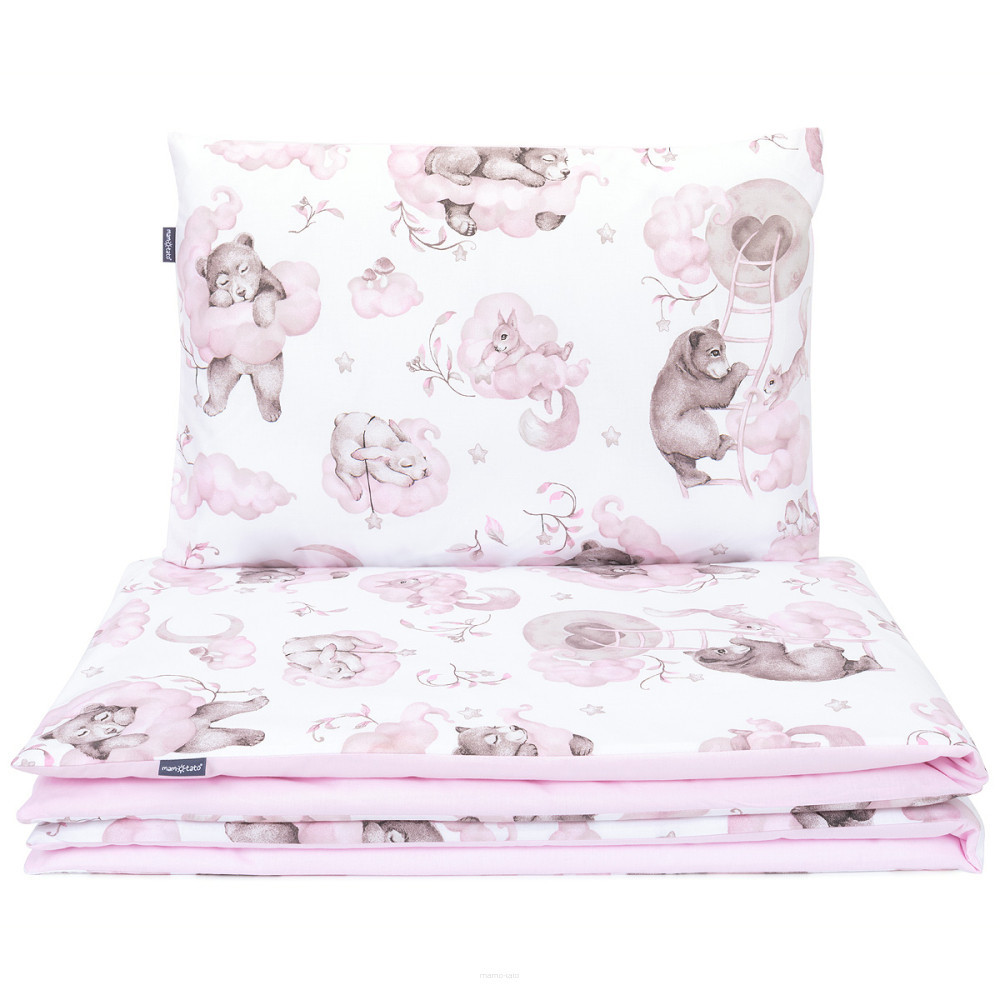 MTT 3 részes ágyneműhuzat szett (100x135cm) - Rózsaszín felhők alvó macikkal