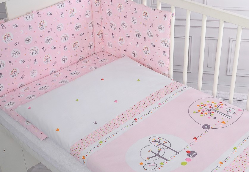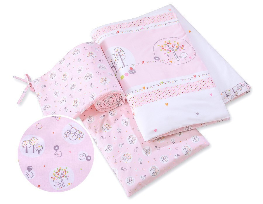 BabyLion Prémium 3 részes ágyneműhuzat szett - Kedves madarak - Rózsaszín