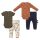 A bodyk alapvető ruhadarabok, a szett 2 db különböző színű és mintájú bodyt és 2 különböző színű nadrágot tartalmaz, amely jól kombinálható. A body 60% pamut és 40 % poliészter, nem irritálja a baba finom bőrét.