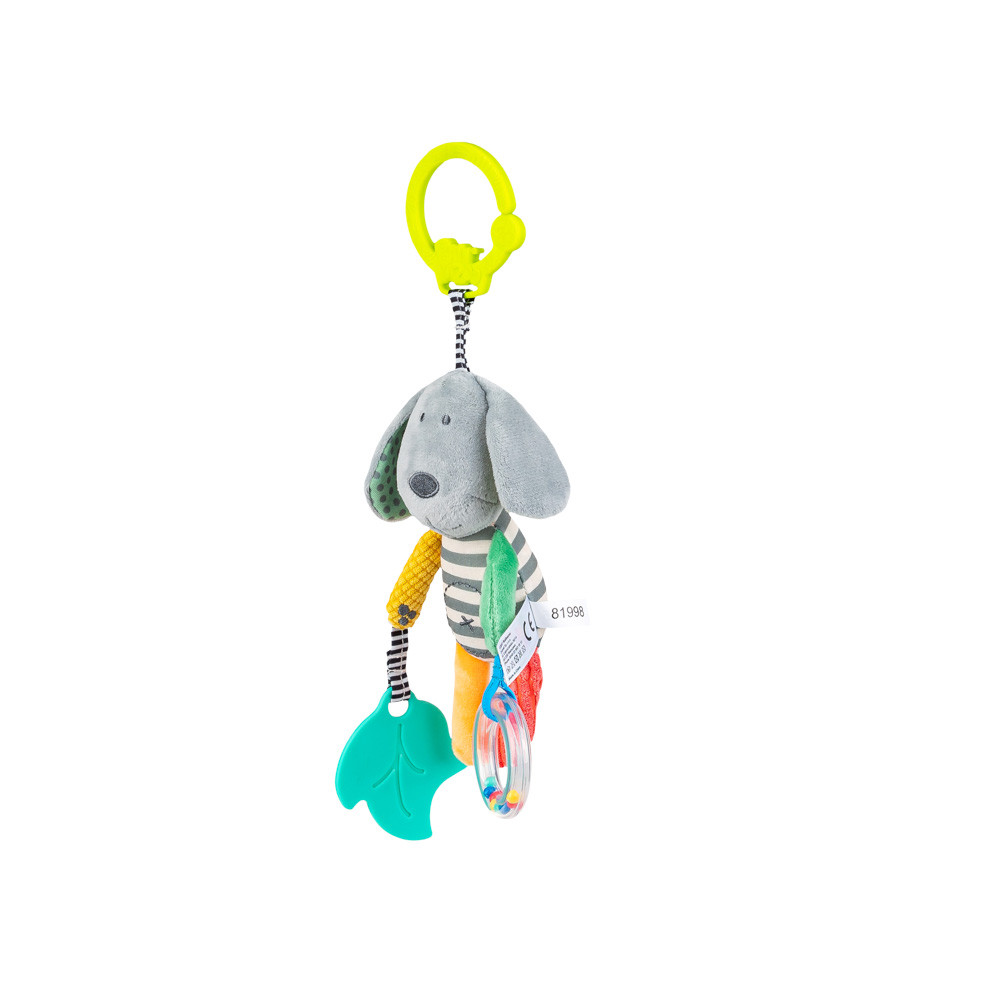 Leírás:A kutya formájú, felakasztható játék könnyedén rögzíthető babakocsira, autósülésre vagy kiságyra, így otthon és utazás közben is ideális társ. A különböző mintázatú és textúrájú anyagok serkentik a baba tapintásérzékét, miközben támogatják az érzékszervi és kognitív fejlődést.
